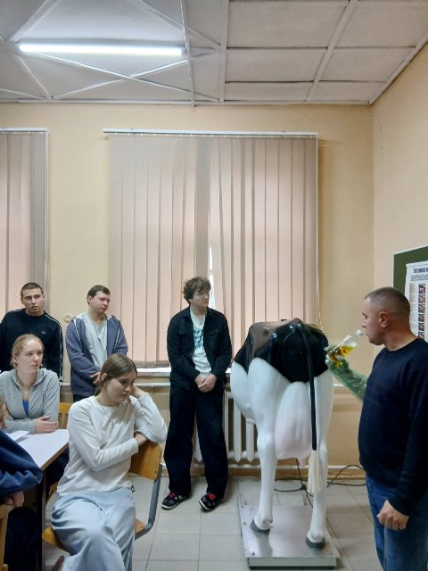 Ребята не только слушали, но и стали участниками по демонстрации интерактива получения профессии рабочего «Оператор по искусственному осеменению животных и птицы», проведённого преподавателем Пентковским Д.Л. с использованием макета-тренажёра коровы и электронного микроскопа определения жизнеспособности спермы для осеменения.