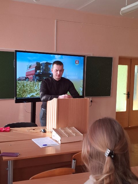 На встрече представитель организации заказчика-кадров ОАО «Путь новый», главный агроном, бывший выпускник колледжа. Он рассказал, чем интересна работа специалиста: разработка и контроль технологических процессов выращивания растений, сбора, обработки и хранения продукции. Его миссия — внедрять новейшие методы и технологии, чтобы каждая капля воды, каждая минута труда и каждый плод приносили пользу и радость потребителям.
