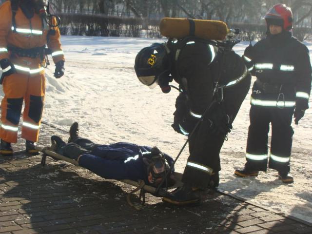 Сегодня вой пожарной сирены нарушил спокойствия граждан в г. Ляховичи. В 10.30 в центр оперативного управления Ляховичского РОЧС поступило сообщение о том, что на втором этаже главного корпуса агарного колледжа в аудитории №14 произошло возгорание. В ходе проведения учебного занятия в результате неосторожного обращения с огнем одного из учащихся произошел пожар, создалось плотное задымление с последующим распространением по путям эвакуации на все этажи. Эвакуация людей из здания не завершена, в лаборантской находился человек.Прибывшие подразделения спасателей приступили к ликвидации возгорания, а звено газодымозащитной службы приступило к поиску пострадавших. На втором этаже в одном из кабинетов были обнаружен студент. На носилках парня эвакуировали из здания на улицу. Хоть пожар и был условным, все действия проводились в реальных условиях. В результате учений проверена готовность подразделений Ляховичского РОЧС к проведению аварийно-спасательных работ и других неотложных мероприятий, администрации аграрного колледжа и студентов к чрезвычайным ситуациям.Благодаря оперативным и слаженным действиям удалось спасти человека и ликвидировать условный пожар. С поставленной задачей справились на отлично и студенты с преподавательским составом колледжа, так как оперативно, без паники покинули задымленное здание.