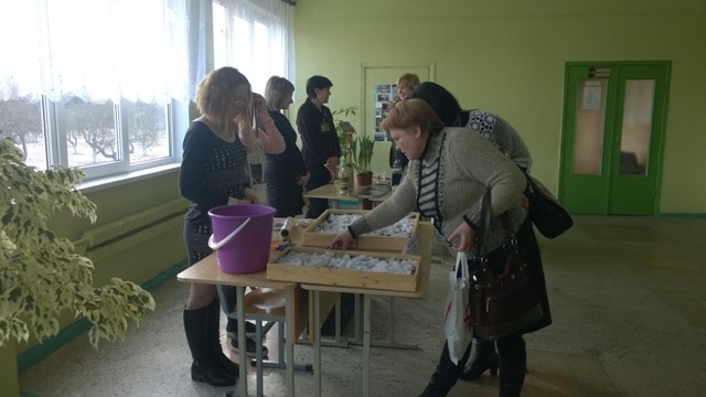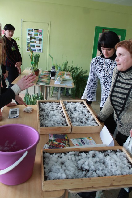 Навучэнка Русак Таццяна дэманстравала варыянты пасеву ў снег вель дробнага насення кветкавых культур.