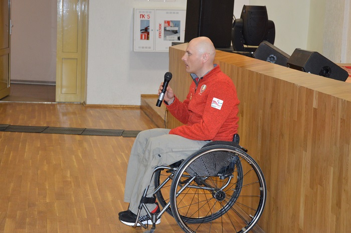 Затем слово было предоставлено самому Паралимпийскому чемпиону, который рассказал о своей жизни и достижениях. Все участники встречи смогли задать вопросы Дмитрию. На которые он искренне и очень подробно ответил.
