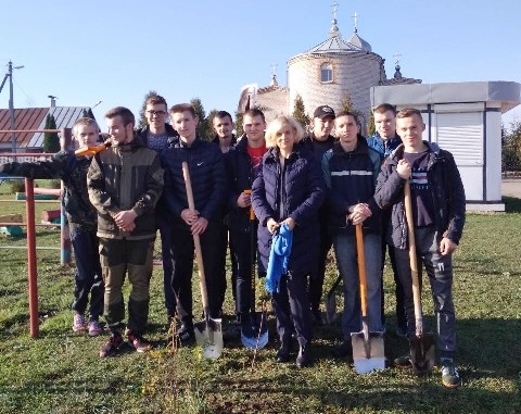Волонтеры колледжа участвовали в высадке деревьев около Храма Воздвижения Креста Господня – г. Ляховичи.