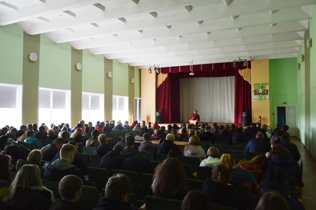 01.10.2018 в ОСП «Ляховичский государственный аграрный колледж» УО «БарГУ» в рамках единого дня информирования состоялась встреча учащихся 3 и 4 курсов с первым заместителем председателя Ляховичского райисполкома Шматко Александром Ивановичем. В ходе встречи Александр Иванович рассказал о перспективах развития района, социально-экономической ситуации, возможностях трудоустройства, льготах для молодых специалистов.