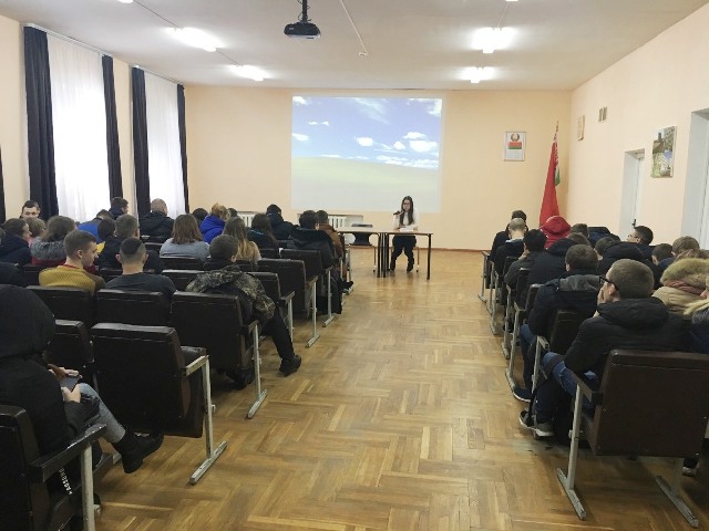 С целью формирования у молодежи позитивного отношения к здоровому образу жизни, исключающие суицидальные риски и любые формы саморазрушительного поведения в колледже 19.12.2018 проведены профилактические мероприятия в рамках проекта «В защиту жизни!». В досуговом центре для учащихся 3-х курсов прошла встреча с врачом-психотерапевтом УЗ «Ляховичская ЦРБ» Сайко И.И., которая рассказала о психическом здоровье и профилактике суицидального поведения, также был организован просмотр видеороликов по вопросам здорового образа жизни. Инструктор-валеолог ЦРБ всем желающим измерила артериальное давление и индекс массы тела.