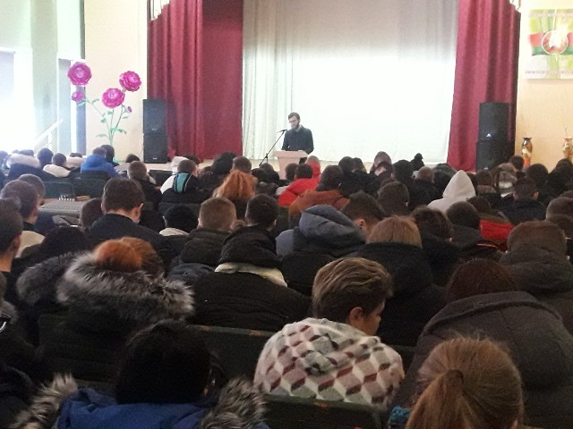 В актовом зале врач-инфекционист Макарчук В.В. учащимся 1-2 курсов рассказал о проблеме распространения ВИЧ-инфекции, а также врач акушер-гинеколог Курак У.Ш. провела беседу о планировании семьи.