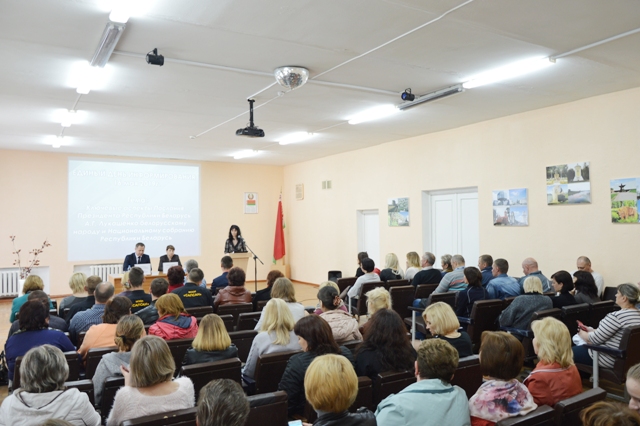 В этот же день, в досуговом центре встречу с сотрудниками колледжа проводили председатель Ляховичского РИК Каминский А.В., начальник по труду, занятости и соц. защите населения Тристень Д.И., заместитель директора КУМПП ЖКХ по производству Колупанович В.В. и директор колледжа Абарова Е.Э. Сотрудникам колледжа была донесена информация о ключевых аспектах Послания Президента Республики Беларусь А.Г. Лукашенко белорусскому народу, а так же сведения о благоустройстве и наведении порядка в Ляховичском районе. Все присутствующие могли задавать вопросы на интересующие темы и получали конкретные ответы.
