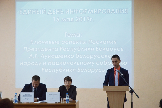 16 мая в рамках проведения Единого дня информирования на тему: «Ключевые аспекты Послания Президента Республики Беларусь А.Г. Лукашенко белорусскому народу и Национальному собранию Республики Беларусь» , колледж посетили несколько гостей.