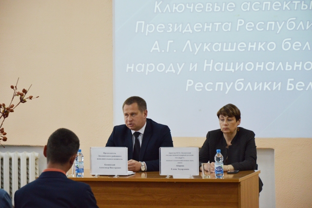 генерал-майор милиции Астрейко А.В., начальник Ляховичского РОВД, подполковник милиции Студеничник А.Л. и директор колледжа Абарова Е.Э. В ходе беседы были затронуты такие темы, как вождение в нетрезвом виде, вред наркотиков и интернет преступления с банковскими картами.