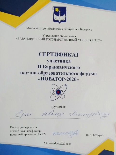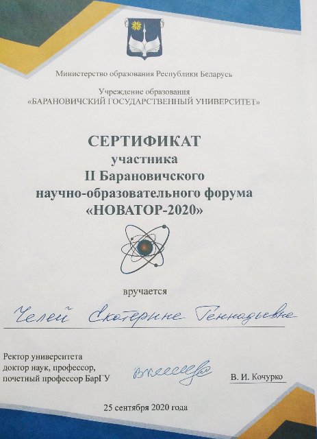 25 сентября в Барановичском осударственном университете прошел II научно-образовательный форум "НОВАТОР-2020". Наш колледж представляли учащиеся 41 Вет группы Челей Екатерина, Черная Диана, Немченя Дана, из 31 Вет группы Ёрш Иван.