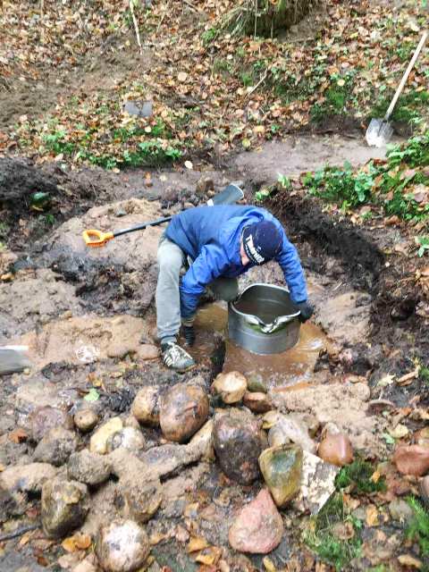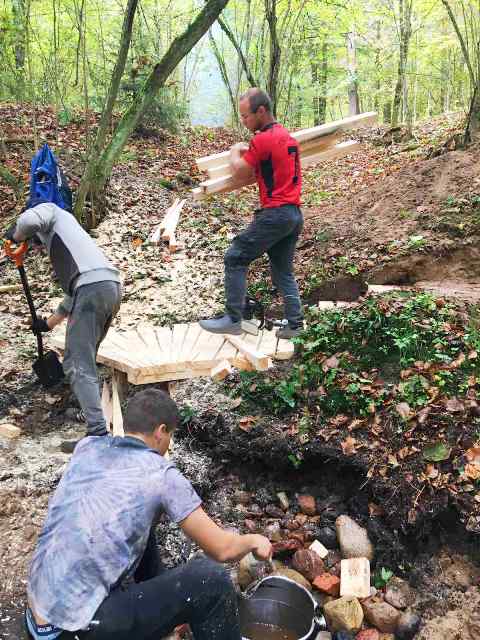 Ребята оборудовали удобный подход - настил из досок, идти по которому не скользко будет даже зимой. Сам источник они укрепили камнями, которые к тому же замечательно выполняют декоративную функцию.