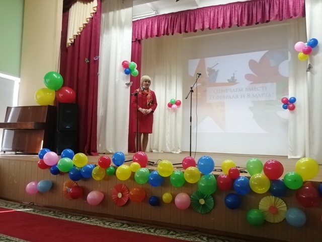 Сегодня со сцены зрителей радовали учащиеся колледжа. Были исполнены шуточные номера, подарившие улыбки всему залу, всем знакомые песни советской эстрады, а также инструментальный номер. С поздравительной речью выступила директор колледжа Ирина Болеславовна Приступа-Юник, которая поздравила всех с праздником мужества, благородства и чести – 23 февраля и, конечно же, главным женским праздником – 8 марта, и пожелала весенних улыбок, крепкого здоровья и большого счастья дорогим мужчинам и милым дамам.