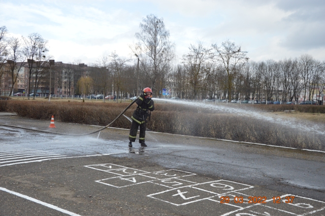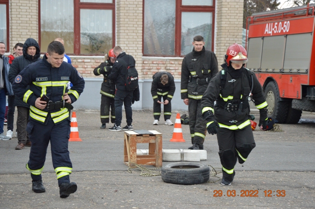 Участники эстафеты состязались в комплексе упражнений: стоп-тест, подъем рукавной линии, битье кувалдой по колесу, прогон колеса с грузом, бег в полной амуниции, а также в точности управления пожарными рукавами с брандспойтами. Ребята показали достаточно неплохие результаты в данной эстафете, а примерив на себя амуницию спасателей, на некоторое время почувствовали свою причастность к сообществу спасателей.