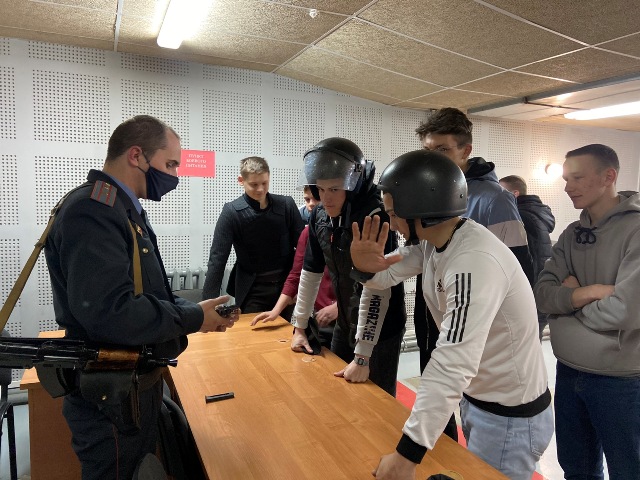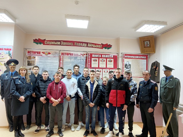 Учащиеся, в отношении которых проводится ИПР, а также учащиеся, члены МООП «Сапсан» посетили Районный отдел внутренних дел, где инспектор ИДН Карпик Анастасия Александровна и старший инспектор группы кадров Завадский Денис Степанович напомнили ребятам о правилах поведения в общественных местах, недопустимости правонарушений с их стороны, а также возможных последствиях при совершении таковых. В ходе экскурсии ребята ознакомились с имеющимимся в отделе милиции спецсредствами и вооружением (палка резиновая, наручники, щит, шлем, бронежилет, табельное оружие пистолет Макарова). Ребята посетили музей, спортивный зал и тир РОВД.