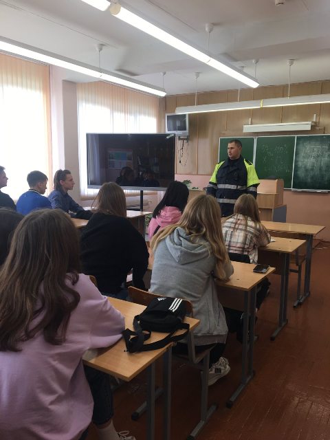 Основная цель беседы - формирование правовой грамотности и правового самосознания, предотвращение совершения административных правонарушений в области дорожного движения. Инспектор рассказал учащимся об административной ответственности несовершеннолетних за нарушение правил дорожного движения, управление транспортным средством водителем, не имеющим права управления, о печальных последствиях при несоблюдении правил дорожного движения, подтверждая примерами из своей практики.