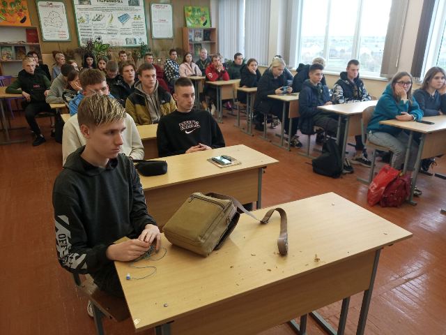 В ходе содержательной беседы Артём Владимирович познакомил учащихся старших курсов с правилами призыва на военную службу, рассказал о современном оснащении различных родов войск, о солдатских буднях. Ребятам интересно было узнать, как организован быт современного военнослужащего, питание, общение с родными и близкими.