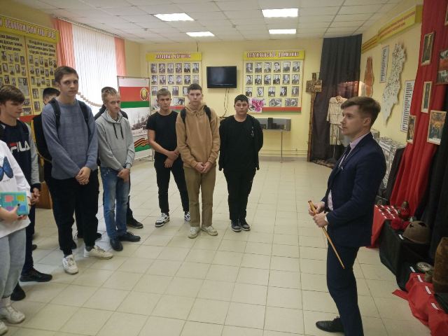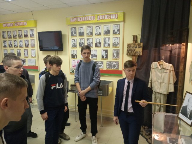 Учащиеся колледжа посетили музей «Боевой и трудовой славы» ГУО «Средняя школа № 2 г.Ляховичи». Экскурсия традиционно началась с истории музея. Экскурсовод познакомил присутствующих с основными структурными составляющими экспозиции. Особое внимание было уделено известным людям, туристическому потенциалу города и района, а также теме Великой Отечественной войны.