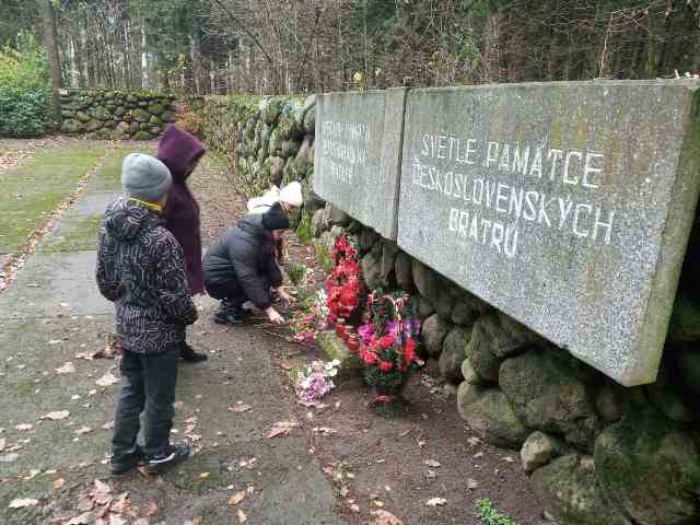 Посетили мемориальный комплекс «Урочище «Гай» в память 3-х тысяч чешских граждан, расстрелянных фашистами во время Второй мировой войны. Этот комплекс – память о страшной трагедии, которая произошла в 1942 году в урочище Гай (откуда и название комплекса). Центральная часть мемориала –протянутые вверх руки. Их венчает арка с колоколом.