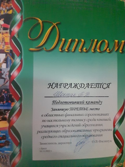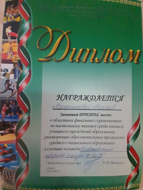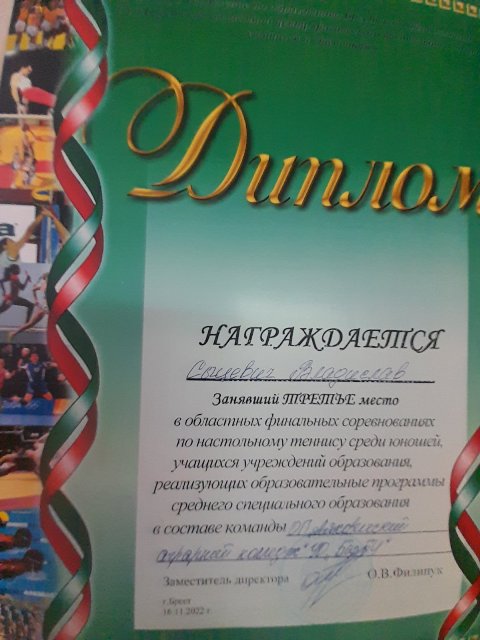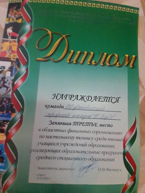 16 ноября сборная команда ОП «Ляховичский аграрный колледж» приняла участие в областных финальных соревнованиях по настольному теннису среди мужских команд учащихся учреждений образования, реализующих программы среднего специального образования.