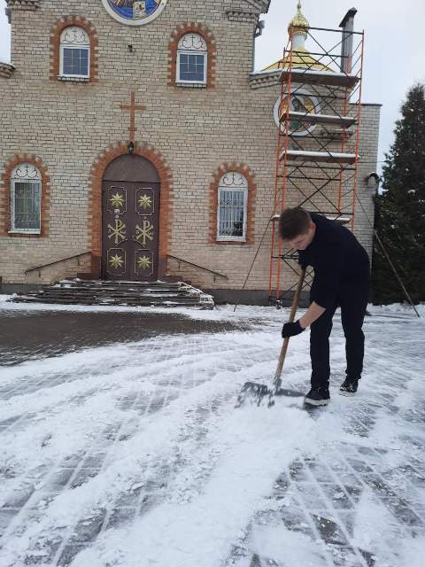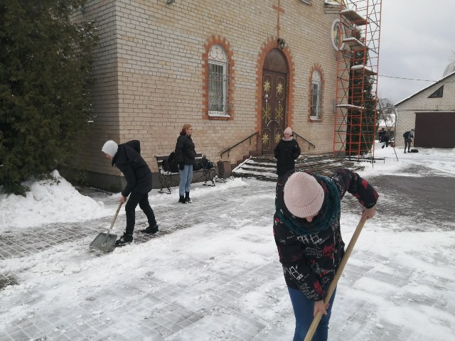 Волонтеры Ляховичского аграрного колледжа присоединились к акции «Зимняя пора добрых дел» и оказали посильную помощь в расчистке снега на территории церкви Воздвижения Креста Господня.