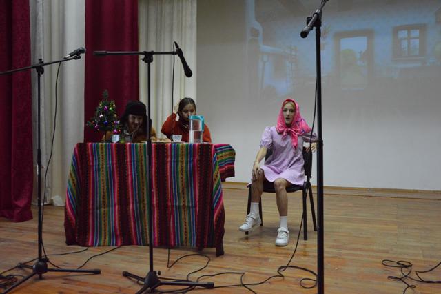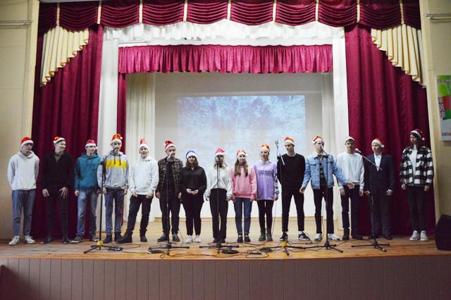 Дед Мороз, Снегурочка, Принц, Красная шапочка и прочие сказочные герои, участники театральной студии «Домино», создали в зале праздничную атмосферу. Учащиеся, посещающие вокальную студию «Вяснянка» и вокальную студию «Созвучие» радовали присутствующих новогодними песнями.