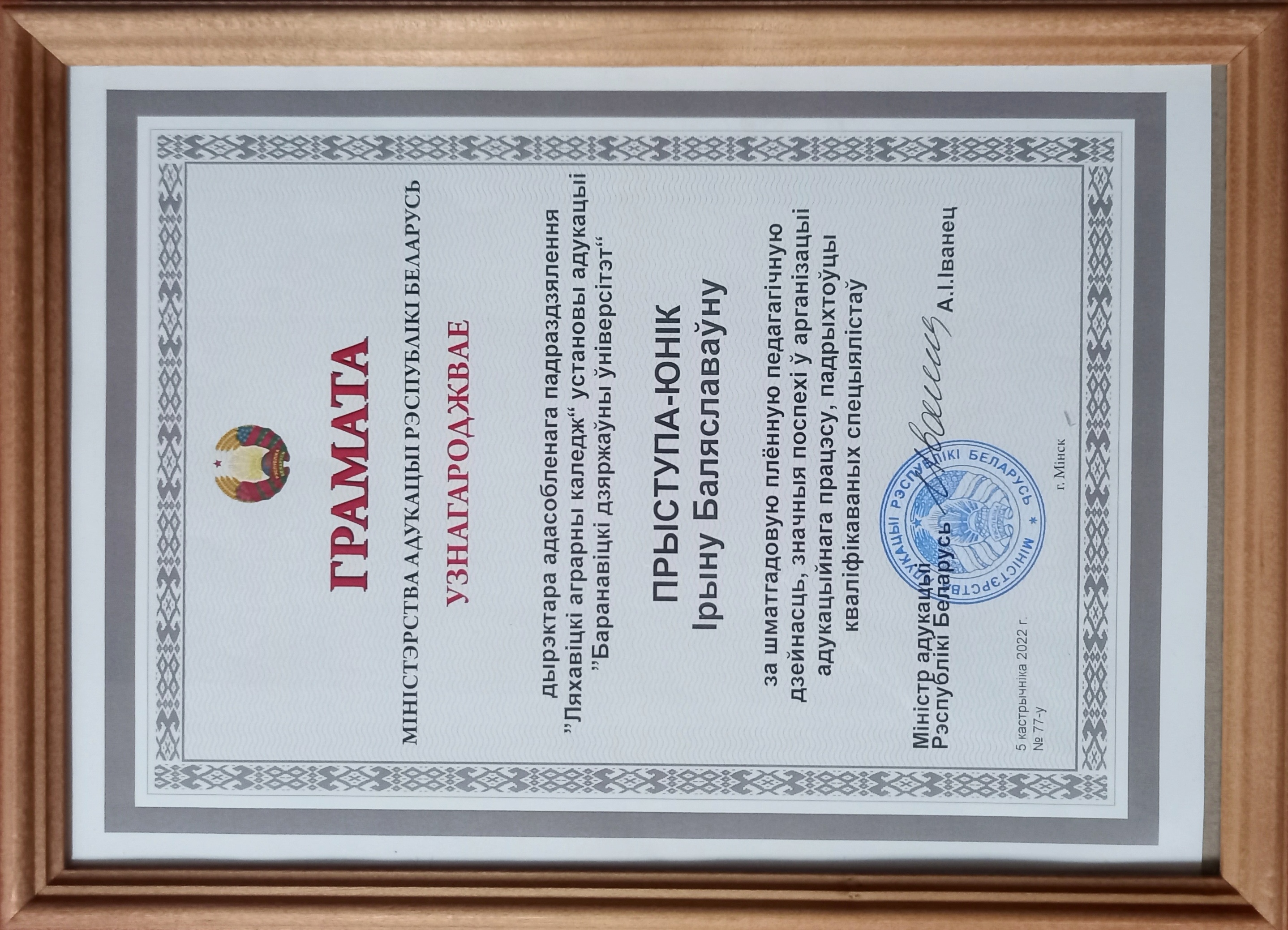 Поздравляем коллег: директора ОП «Ляховичский аграрный колледж» УО «Барановичский государственный университет» Ирину Болеславовну Приступа-Юник, заместителя директора по учебно-методической работе Наталью Леонидовну Кирмель и председателя ППО профессионального союза работников образования и науки Ирину Леонидовну Дубиковскую - с получением заслуженных наград, которые являются прямым подтверждением высоких личностных качеств.