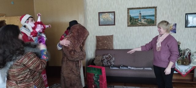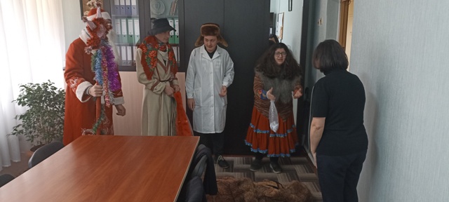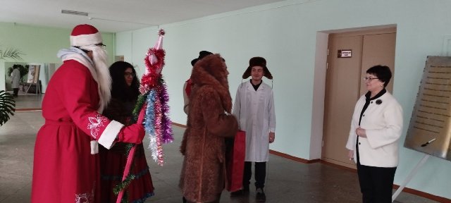 Облаченные в традиционные костюмы, учащиеся с песнями и стихами прошлись по кабинетам и аудиториям колледжа, желая всем счастья и благополучия. Не обошлось и без символа колядок - козла, которого нельзя было не угостить конфеткой.
