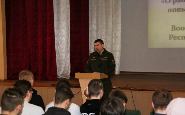 Перед собравшимися выступили: начальник обособленной группы Ляховичского района военного комиссариата города Барановичи, Барановичского и Ляховичского районов капитан Кирута А.В., заместитель председателя Комиссии по делам несовершеннолетних Ляховичского райисполкома Мацкевич Н.Ф., инспектор ИДН Ляховичского РОВД Тихонович В.А. и сотрудник уголовного розыска Ляховичского РОВД Котов Д.А.