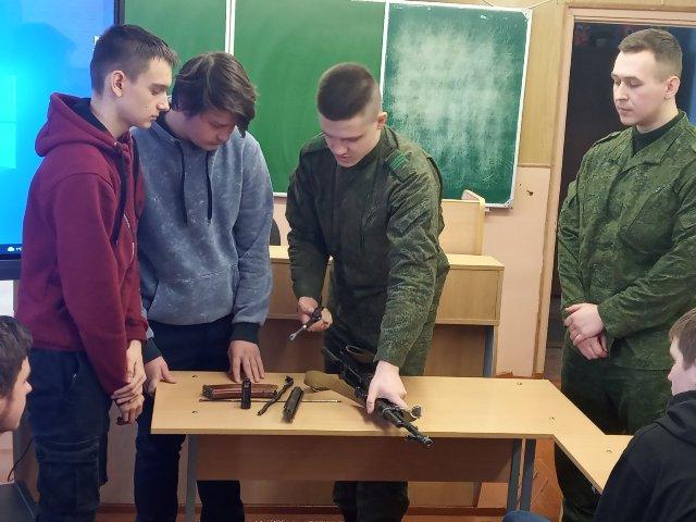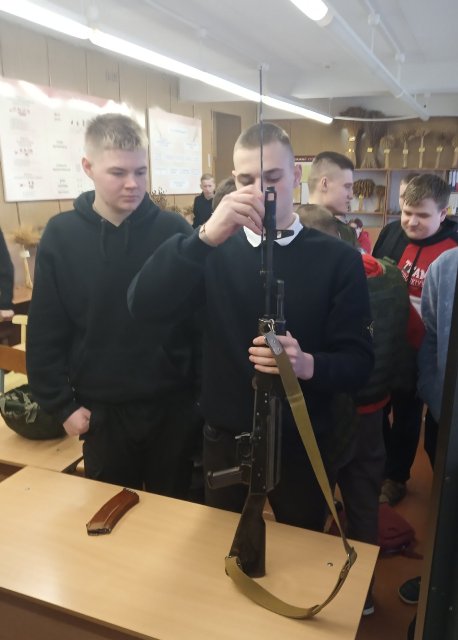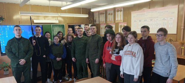 Накануне Дня Защитника Отечества в Ляховичский аграрный колледж прибыли представители войсковой части 29969, которые провели для учащихся «Урок мужества». Они рассказали ребятам о военных учебных заведениях и профессиях, которые там можно приобрести, об особенностях полевых учений и многом другом. Показали, как в армии учат боевым делам. Ребята попробовали себя в сборке-разборке оружия, примерили бронежилет и шлем.