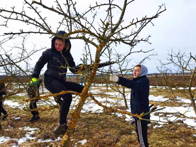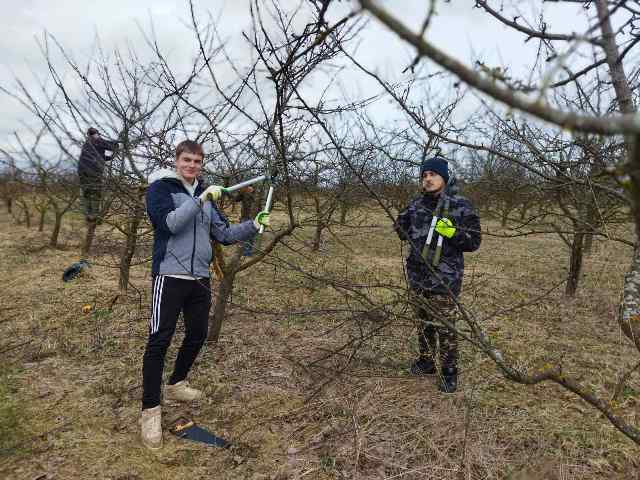 Сегодня будущие плодоовощеводы получают практические навыки на производственной площадке яблоневого сада. Ребята говорят, что с пользой и интересом осваивают технологию обрезки деревьев.