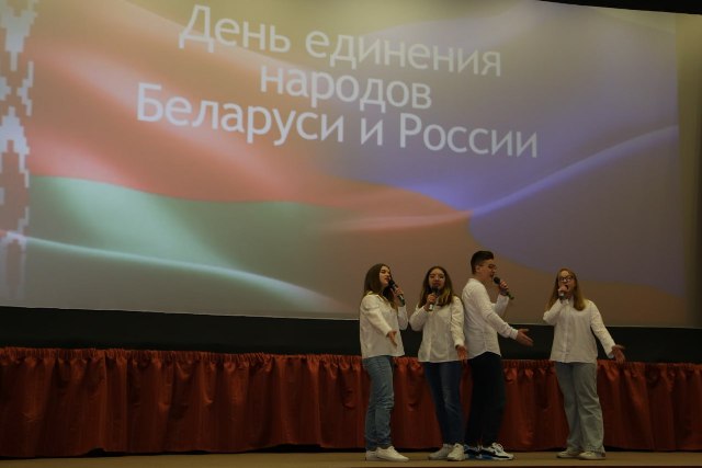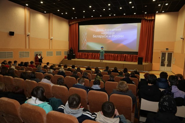 Сегодня учащиеся колледжа приняли участие в районном мероприятии, посвященном Дню единения народов Беларуси и России. Ребята посетили кинотеатр «Октябрь», где для присутствующих была организована концертная программа «Мы вместе» и показ кинофильма «Нахимовцы».