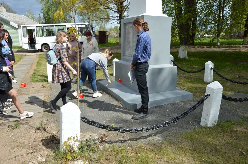 В целях формирования чувства патриотизма, любви к своей Родине и уважения к людям, которые ковали Победу, учащиеся колледжа 4 мая совместно с педагогом дополнительного образования объединения по интересам «Краеведение», председателем ветеранской организации колледжа посетили места боевой славы Ляховщины, где возложили цветы к памятникам и обелискам, почтили память погибших воинов. Посетили и поздравили с праздником Курьян Н.Н., жительницу д.Божки, родственники которой участвовали в ходе Великой Отечественной войны.