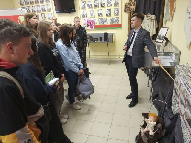 Ребята узнали, что основная идея экспозиции – показ политики геноцида немецко-фашистских захватчиков в отношении белорусского народа через музейные предметы и фотодокументальные материалы.