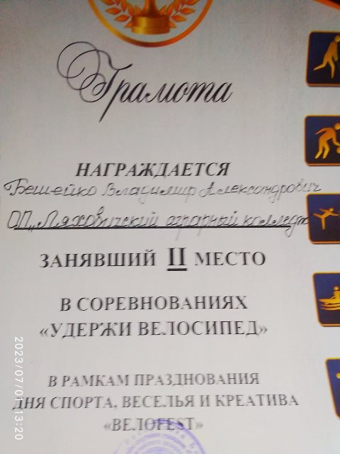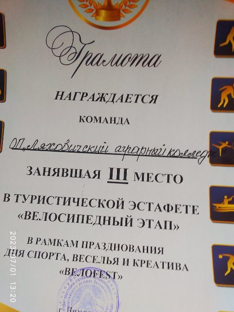 День спорта, креатива и веселья в Ляховичах открыл ВелоFest «Навстречу эмоциям», в котором приняли участие руководитель физического воспитания Бешейко В.А. и учащаяся 12 «Вет» группы Виктория Холодковская.