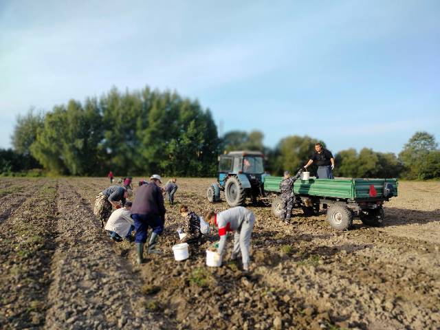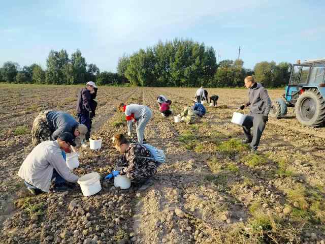У восень — работ восем. Гэта ведаюць навучэнцы 41 «П» групы агранамічнага аддзялення, якія другі тыдзень працуюць на палях ААТ «Ляхавіцкі кансервавы завод».