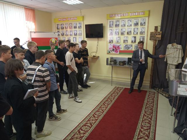 Учащиеся нового набора посетили музей «Боевой и трудовой славы» ГУО «Средняя школа № 2 г. Ляховичи». Экскурсия была посвящена геноциду белорусского народа в годы Великой Отечественной войны. Ребята узнали о том, какие боевые операции проходили на территории нашего района, что пришлось пережить нашим землякам в военные годы. Экскурсовод призвал учащихся помнить о тех страшных и ужасах годах, которые пришлось пережить их ровесникам, нашим дедам, бабушкам, чтобы в дальнейшем не допустить подобного. Атмосфера данной экспозиции напомнила всем о войне, о людях, которые ушли и не вернулись, и о том, какой ценой далась Победа нашему народу. Ребята внимательно слушали экскурсовода, а это значит, что они не остались равнодушными.