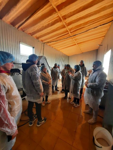 Для них была проведена экскурсия по полям фермерского хозяйства. Учащиеся увидели работу современной сельскохозяйственной техники и оборудования: комбайнов по уборке выращиеваемой овощной продукции, линии по сортировке корнеплодов и картофеля, цех по обработке и вакуумной упаковке столовой свеклы, варки и стерилизация ее в автоклавах.