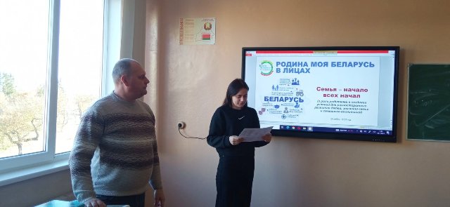 26 октября в колледже в форме круглого стола прошло занятие в рамках проекта "Школа Активного Гражданина". Участие в нем приняли учащиеся 11ППР группы совместно с куратором Савостюк О.В. и преподавателем социально-гуманитарных предметов Богдановичем С.С.Тема - «Родина моя Беларусь в лицах. Семья – начало всех начал» (о роли родителей в создании условий для разностороннего развития детей, значении семьи и семейного воспитания).
