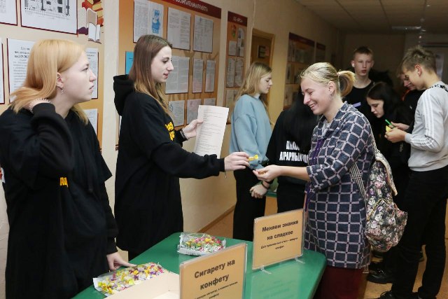 По сложившейся традиции в канун Международного дня студента в колледже был организован день самоуправления. Учащиеся-активисты в этот день взяли на себя функции работников. И, надо сказать, справились на отлично. Проведённые занятия и практики, чисто и своевременно убранные помещения, хорошо налаженный контроль со стороны администрации… Всё это было по плечу ребятам. Ярким аккордом дня стала концертная программа, посвящённая Дню студента и Дню работника сельского хозяйства и перерабатывающей промышленности. Она удалась благодаря сотрудничеству воспитательного отдела колледжа, а также мастерству и талантам педагогов, руководства Ляховичской детской школы искусств и участников народной экспериментальной группы «Берагіня».