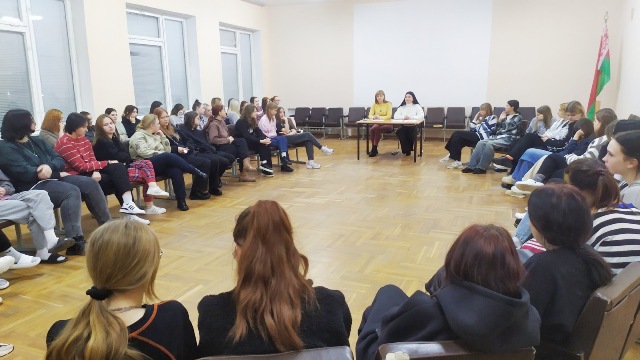 13 декабря в досуговом центре общежития колледжа состоялась профилактическое занятие с элементами игры для несовершеннолетних девушек на тему «Что такое половая неприкосновенность?» с участием начальника ООПП Ляховичского РОВД Хмарука Сергея Иосифовича и инспектора ИДН Ляховичского РОВД Тихонович Валерии Александровны.