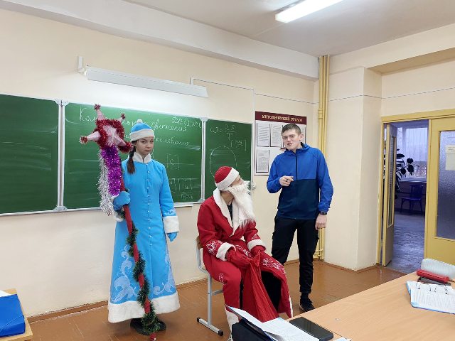 Утром 29 декабря в стенах нашего колледжа окончательно установилась праздничная атмосфера, пропитанная запахом мандаринов и шоколадных конфет. А подарили это настроение Дед Мороз и Снегурочка, которые прошлись по всем аудиториям и поздравили преподавателей, сотрудников и учащихся с наступающим Новым годом. Ребята и преподаватели в свою очень прочитали Деду Морозу и Снегурочке праздничные стихи, пели новогодние песни, за что получили сладкие угощения!