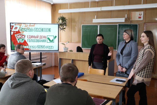 Открытый диалог “Мнение на равных. Выборы по-новому” состоялся в Ляховичском аграрном колледже. В открытом диалоге приняли участие начальник отдела идеологической работы и по делам молодёжи Ляховичского райисполкома Ольга Бурак и первый секретарь Ляховичского райкома ОО "БРСМ" Анастасия Демидович.