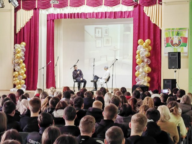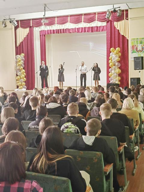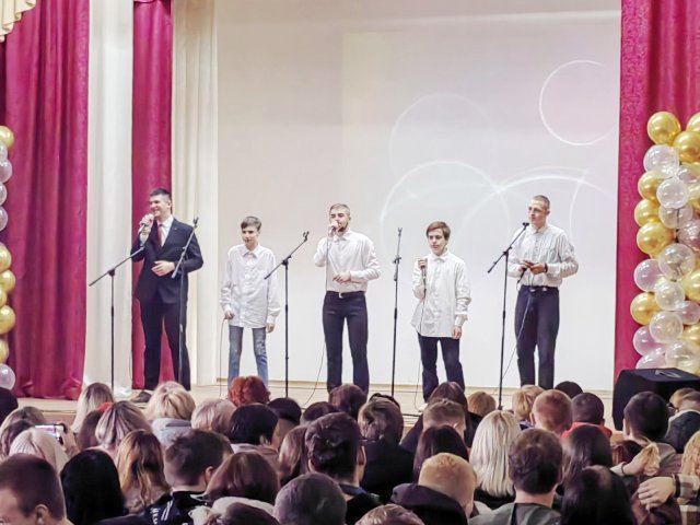 Со сцены зрителей радовали участники художественной самодеятельности. Учащимися были исполнены замечательные песни и танцы, шуточные номера, подарившие улыбки всему залу.
