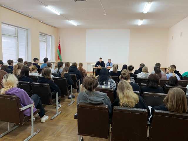 В досуговом центре общежития состоялось профилактическая беседа оперуполномоченного ОУР Ляховичского РОВД Биза Н.Н. и инспектора ИДН Тиханович В.А с учащимися первых курсов на тему: «Вред немедицинского потребления наркотических средств и психотропных веществ. Способы вовлечения и ответственность за незаконный оборот наркотических средств и психотропных веществ. Действие лица при получении информации о незаконном обороте наркотических средств и психотропных веществ».
