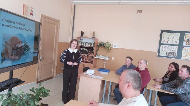 Гулицкая Татьяна Иосифовна презентовала итоги исследовательской работы «Пищевые добавки в колбасном производстве» с целью обсуждения актуальности выбора темы и итогов опыта работы с последующей рекомендацией для участия в конференции «Наука. Творчество и профессиональная деятельность».