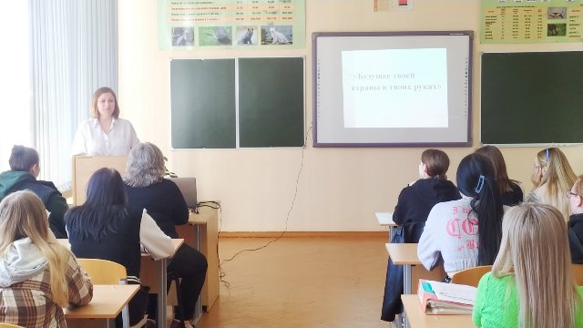 Преподаватель Дубиковская И.Л. провела мероприятие профориентационной направленности «Будущее твоей страны в твоих руках» на которое была приглашена директор племенной станции по Ляховичскому району Республиканского сельскохозяйственного унитарного предприятия «Брестплемпредприятие» Тямчик Н.А.
