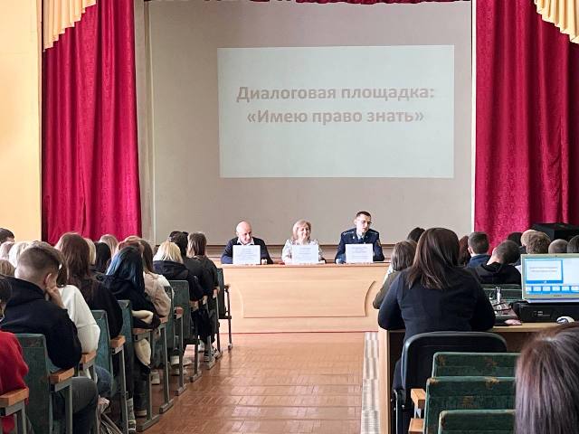 Сегодня в колледже состоялась увлекательная и познавательная диалоговая площадка «Имею право знать» с участием заместителя председателя КДН Мацкевич Н.Ф., помощника прокурора Вильковского Е.Л., адвоката Петрива В.А. Гости мероприятия поделились своими знаниями и опытом работы в сфере правовой защиты, рассказали о правах и обязанностях граждан, а также ответили на актуальные вопросы учащихся.