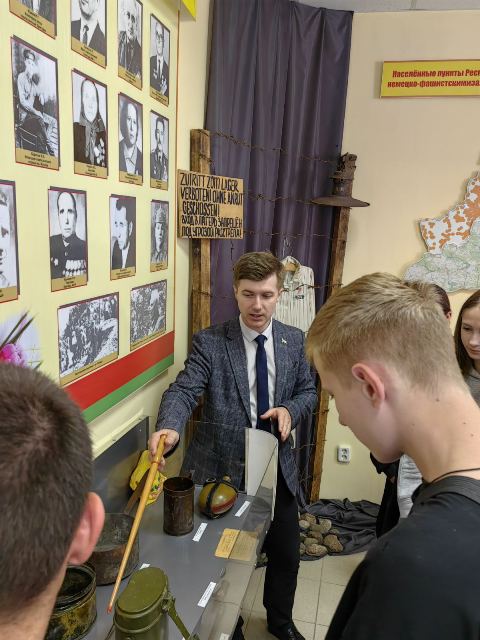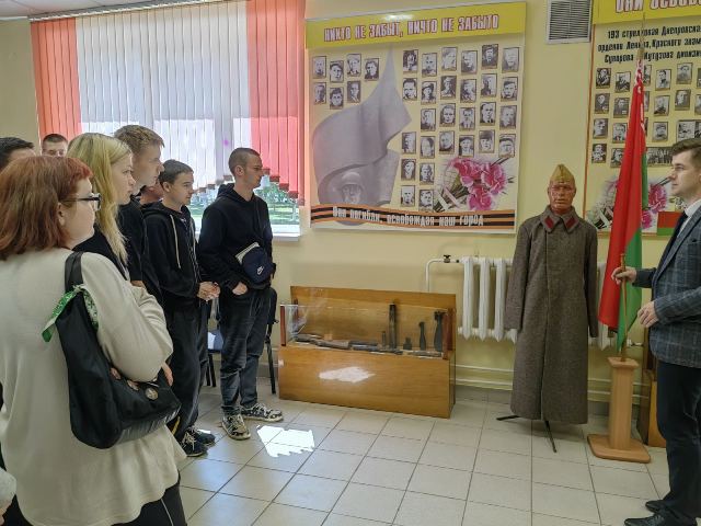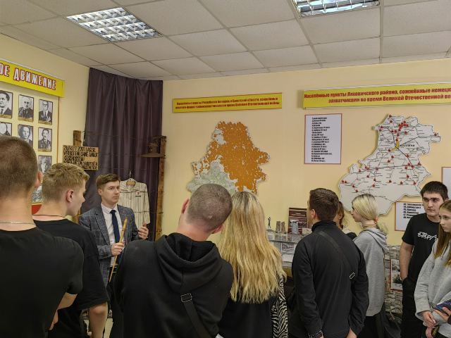 23 мая учащиеся колледжа совершили образовательную экскурсию в музей «Боевой и трудовой славы», расположенный в государственном учреждении образования «Средняя школа №2 г. Ляховичи». Это мероприятие было организовано с целью ознакомления учащихся с историей и традициями региона, а также для укрепления патриотических чувств и уважения к защитникам родного края.