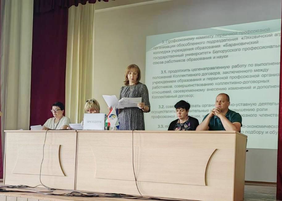 25 июня состоялось отчетно-выборное собрание в ППО работников Ляховичского аграрного колледжа. Участники собрания, обсудив доклады, единогласно признали работу профсоюзного комитета удовлетворительной, наметили задачи на новый период.