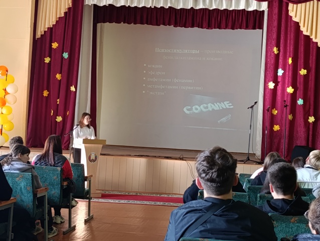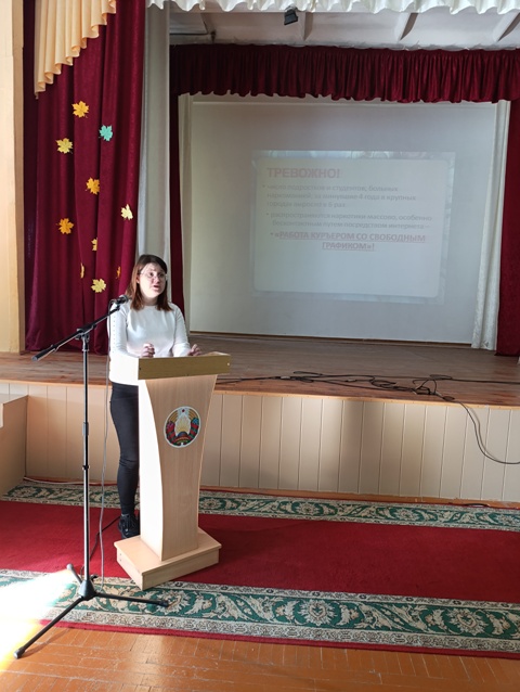 Большое внимание также было уделено вопросу наркомании. Врач-нарколог УЗ «Ляховичская ЦРБ И.И.Сайко рассказала учащимся о причинах появления зависимости от наркотиков, методах профилактики , о последствиях применения наркотических веществ и ответственности за их распространение.
