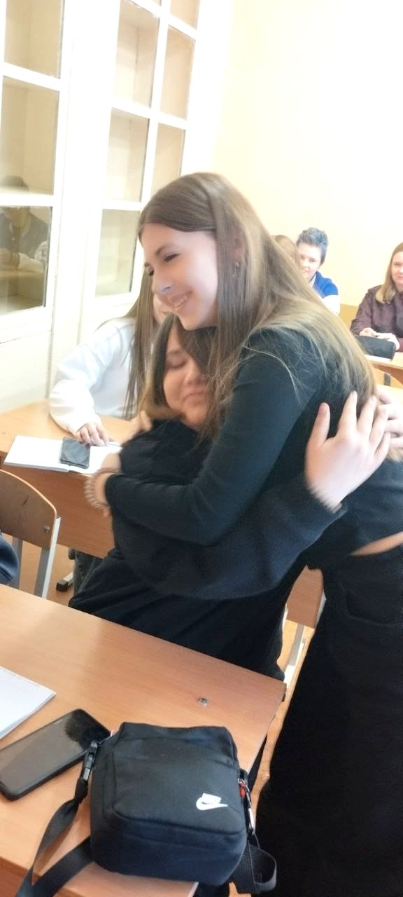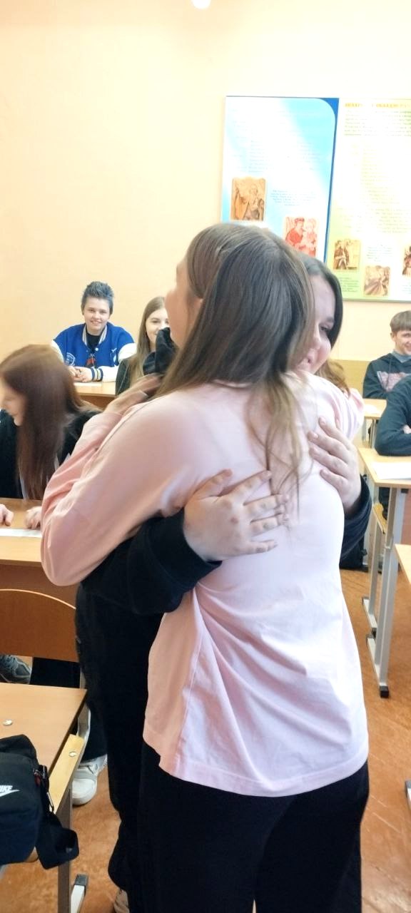 В рамках месячника по профилактике суицида среди учащихся колледжа педагогом-психологом Орловской Е.А., было проведено занятие с элементами тренинга "Обними даром".